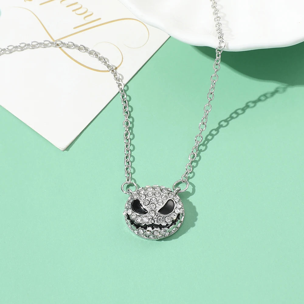Luce tu lado más oscuro y elegante con este espectacular colgante inspirado en Jack Skellington 🎃💀. Su diseño lleno de cristales brillantes hace que la cara del rey de Halloween destaque con un toque glamuroso y misterioso ✨🦇.