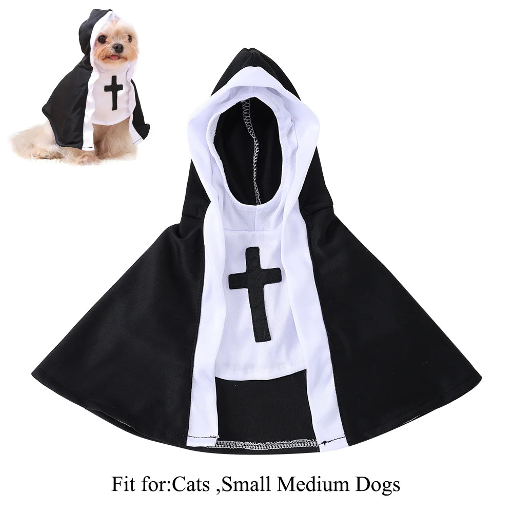 Este disfraz de monja es ideal para Halloween, sesiones de fotos o simplemente para arrancar sonrisas. Su diseño ligero y cómodo permite que tu peludo lo lleve sin problemas, mientras tú disfrutas viendo cómo reparte bendiciones... y travesuras.