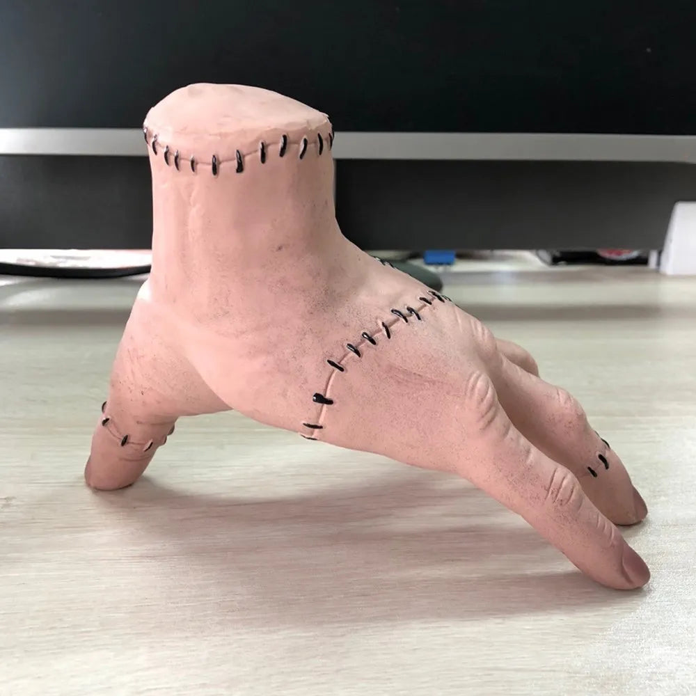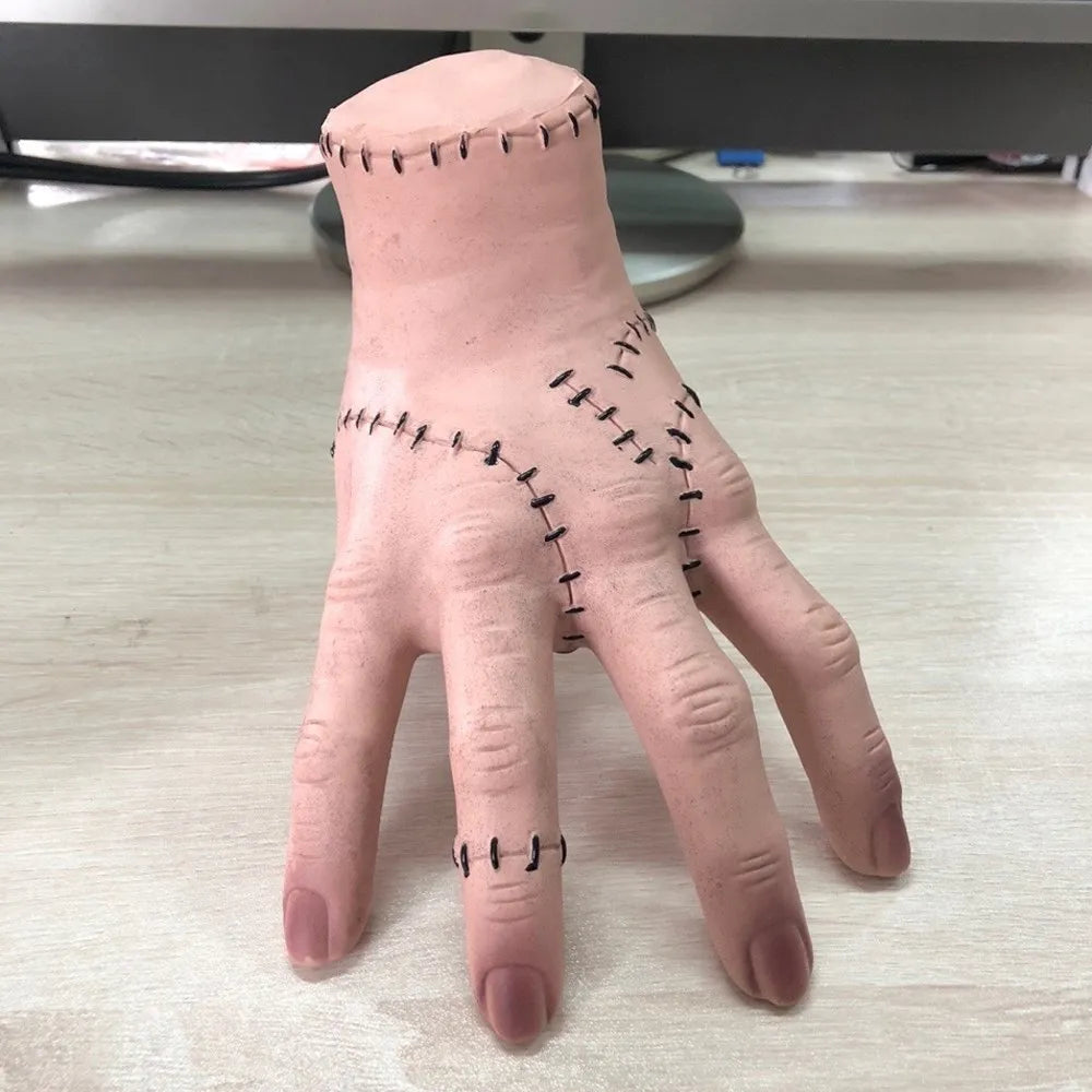 Dale un toque espeluznante y divertido a tu decoración con la Mano de Terror de Halloween, inspirada en el icónico personaje de la Familia Addams. Su acabado realista con detalles de cicatrices y costuras la convierte en un accesorio perfecto tanto para disfraces como para decorar fiestas temáticas.