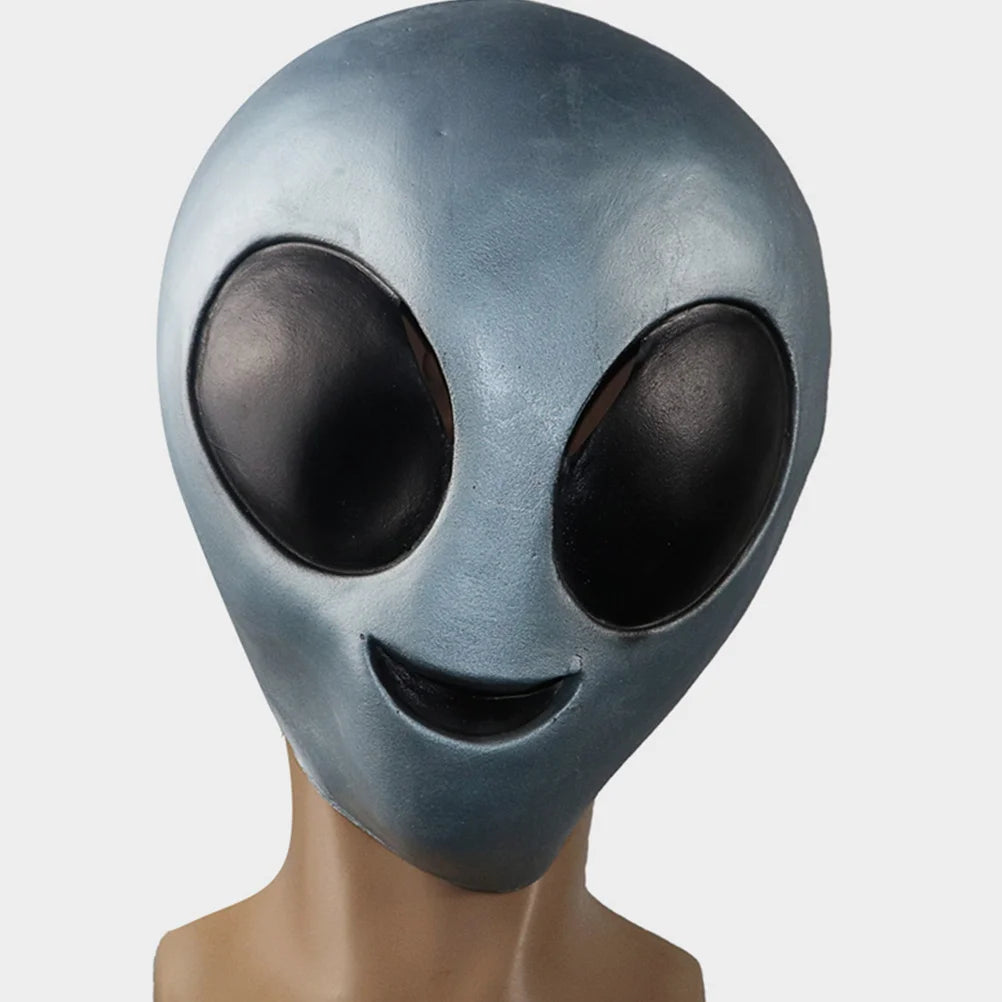 Sorprende a todos en tu próxima fiesta con la Máscara Alienígena Sonriente, un diseño único inspirado en seres de otro mundo. Con sus enormes ojos negros y su característica sonrisa inquietante, es el accesorio perfecto para destacar en Halloween, carnavales, eventos temáticos o cosplay de ciencia ficción.