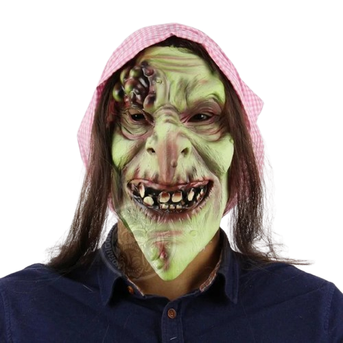 Convierte tu disfraz en el centro de todas las miradas con la Máscara de la Castañera Terrorífica. Una careta de bruja vieja de aspecto espeluznante, fabricada en látex de alta calidad y con detalles realistas en el rostro y cabello, que le dan un acabado inquietante.