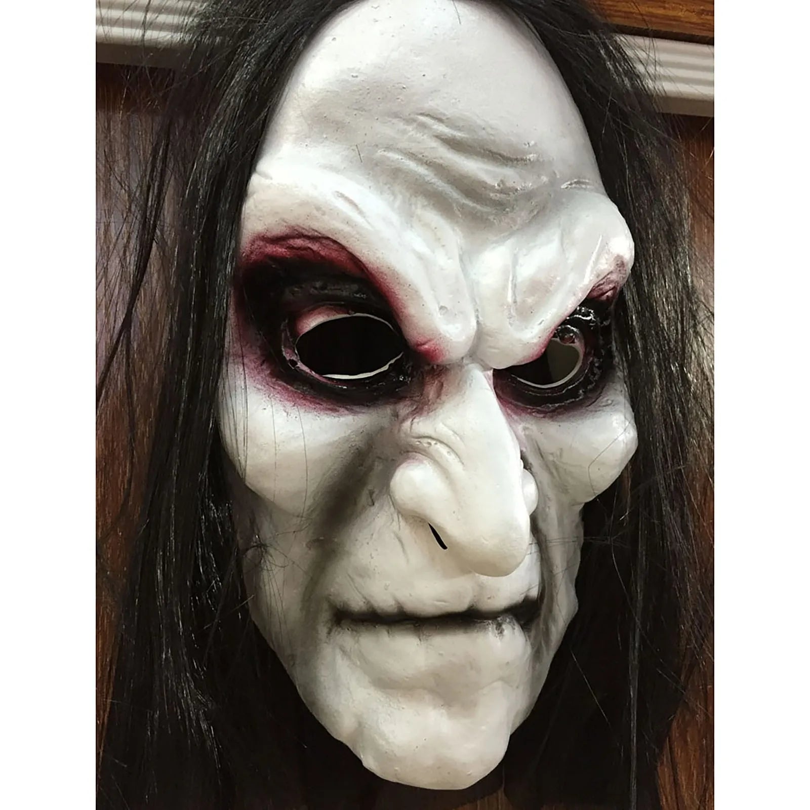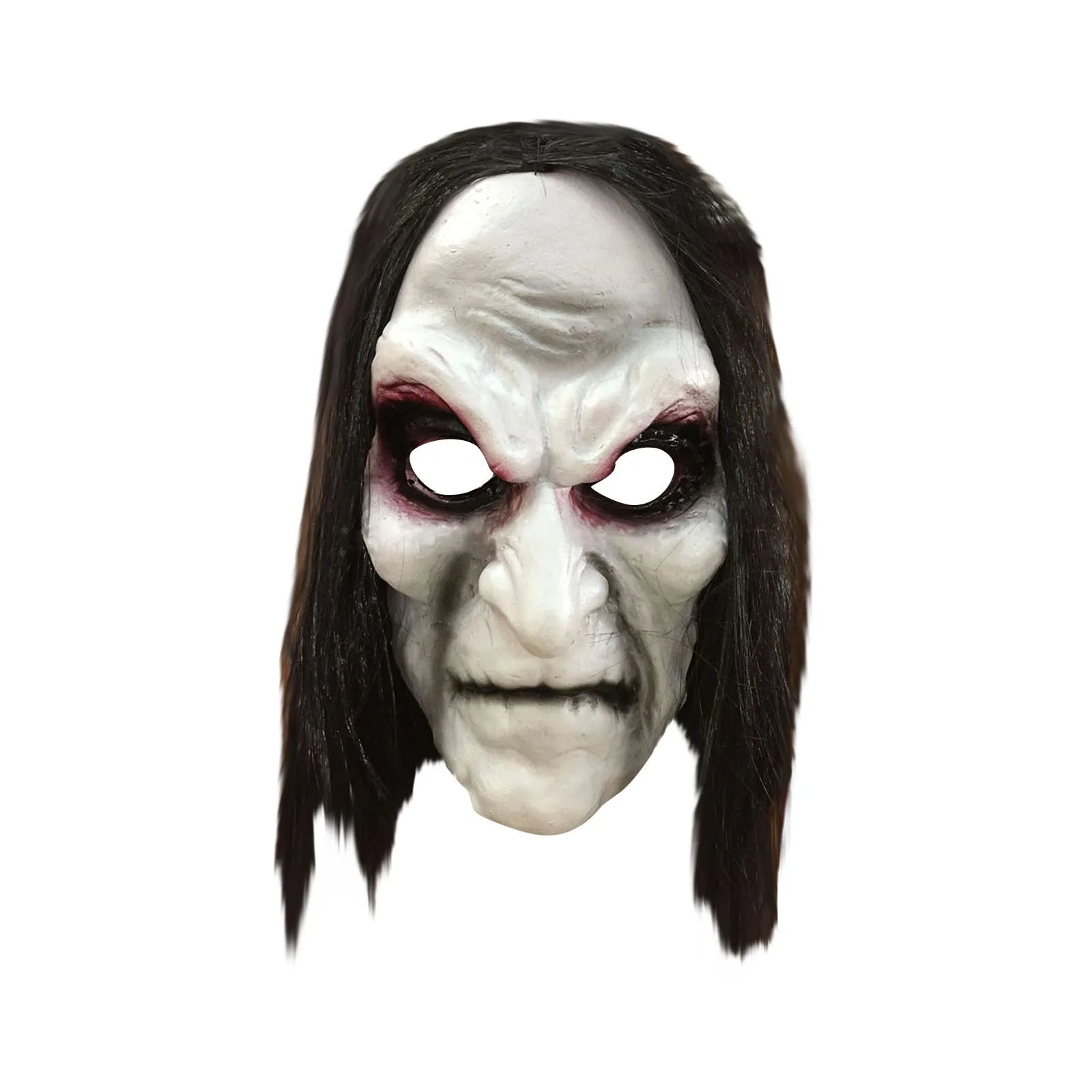 Aterradora y realista, la Máscara Fantasma Pálido es el complemento ideal para cualquier disfraz de Halloween. Con su diseño de rostro pálido, ojos huecos y cabello largo oscuro, logra un efecto inquietante que no dejará indiferente a nadie.