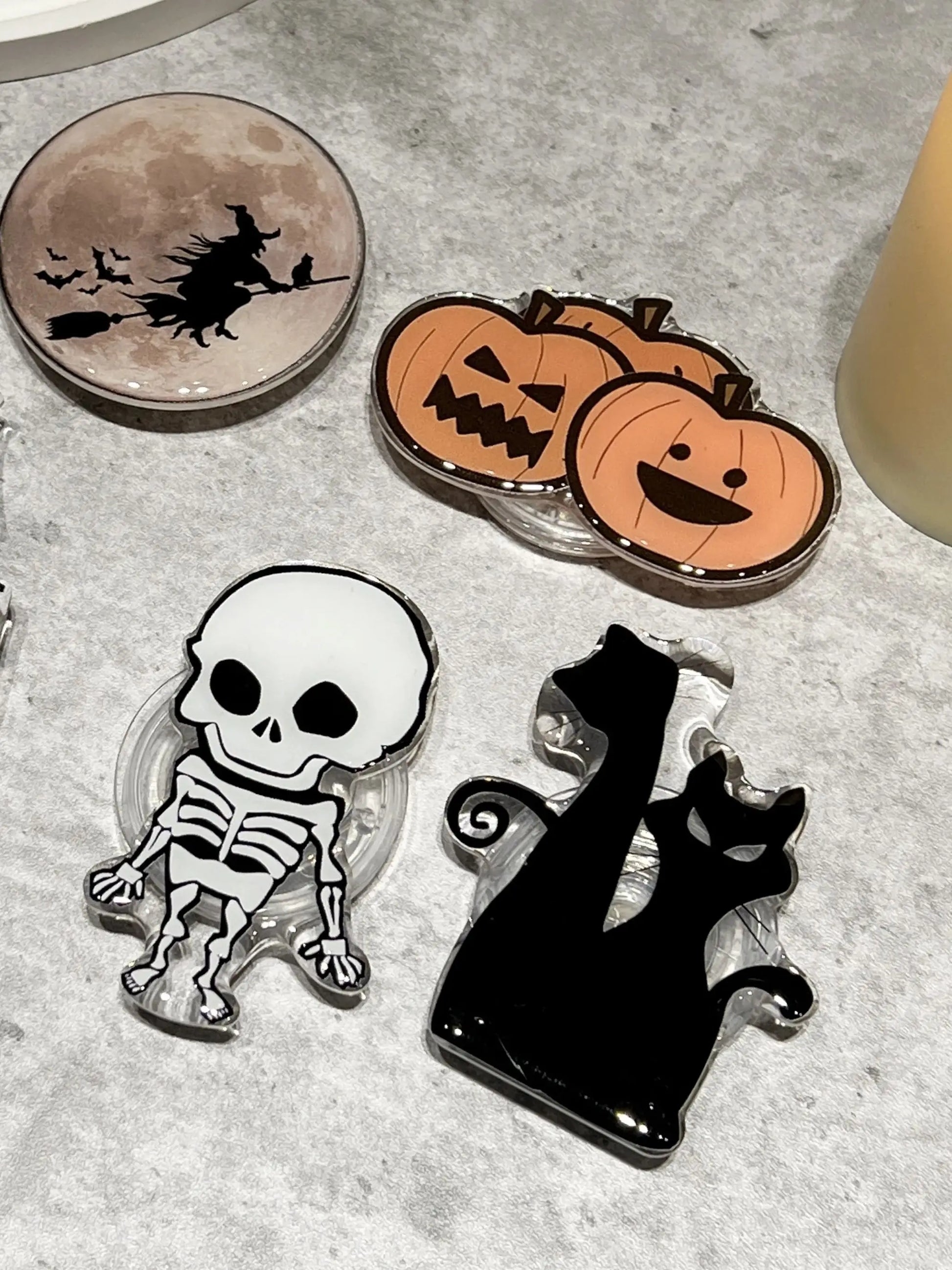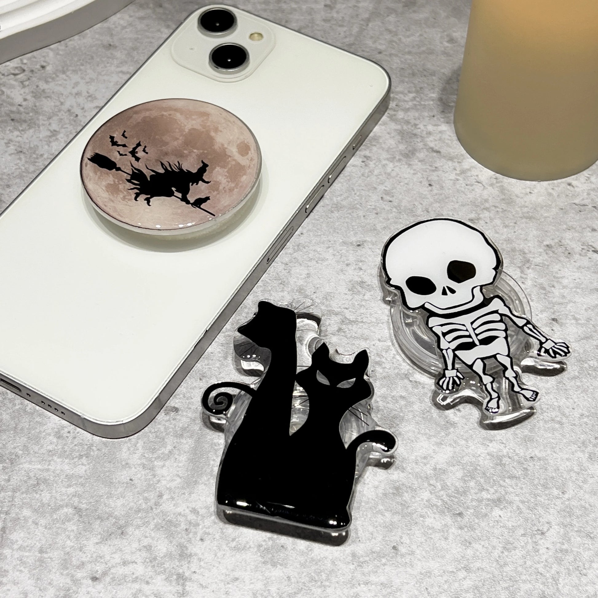 Haz que tu smartphone también se vista para la ocasión con estos soportes plegables inspirados en Halloween. Además de ser prácticos para sujetar el móvil y ver vídeos cómodamente, tienen diseños divertidos y terroríficos: desde un simpático esqueleto, gatos negros misteriosos, una bruja volando frente a la luna hasta clásicas calabazas sonrientes.